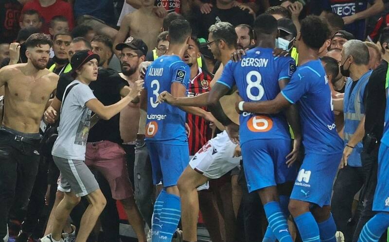 Video enfrentamiento de jugadores del Marsella con aficionados del Niza