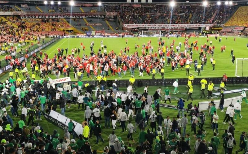 La alta funcionaria aseguró que la Alcaldía respalda las decisiones que la División Mayor del Fútbol Colombiano (Dimayor), organizadora del torneo, tome frente a lo sucedido. Tras el primer ataque de los hinchas visitantes, aficionados del Independiente Santa Fe que estaban al otro lado de la cancha se metieron al terreno de juego y llegaron a enfrentarse a los fanáticos 'verdolagas' en una batalla campal.