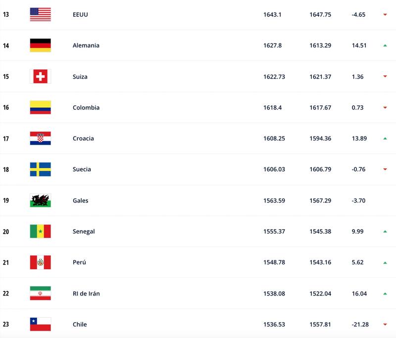 Dentro de este Ranking hubo cambios al igual en la UEFA, uno de ellos es el escalón de Portugal al séptimo puesto, que quita a España, y la entrada en el 'top 10' de Dinamarca, selección que se acopla justo por detrás de México. Entre las 50 primeras escuadras, los equipos que más han escalado, con estimación de cuatro puestos, son Irán (22), Rusia (37), Noruega (39), Escocia (45) e Irlanda del Norte (47).