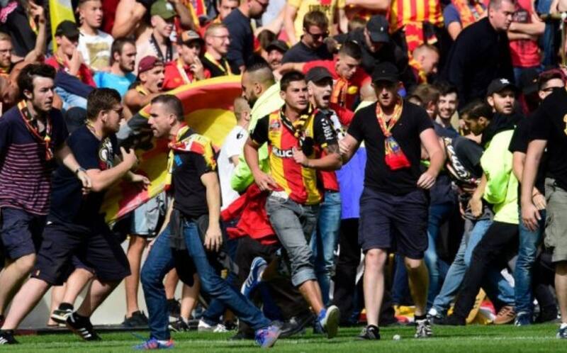 Los aficionados del Lens saltaron al campo y por momentos el ambiente se tornó complicado, pero la rápida acción de la policía evitó que la situación se descontrolara. Sin embargo, causaron seis heridos leves y hubo dos detenidos en el lugar, uno de ellos fue capturado por lanzar un asiento a los uniformados.