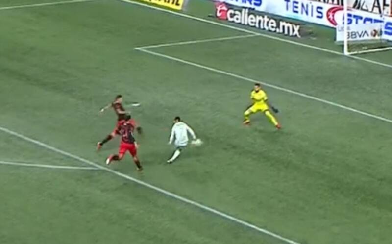El jugador chileno aprovechó un error de la zaga de Tijuana y avanzó con dirección al arco a gran velocidad y al entrar al área rival se perfiló a su pierna izquierda para cruzar su tiro y vencer al guardameta rival que nada pudo hacer ante la gran definición de Dávila.