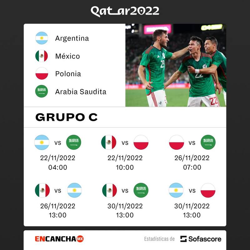El representativo azteca iniciará sus actividades en el Mundial de Qatar cuando se enfrente a su similar de Polonia. Posteriormente, chocará con Argentina, considerada una de las favoritas al título, para cerrar esta instancia ante Arabia Saudita.