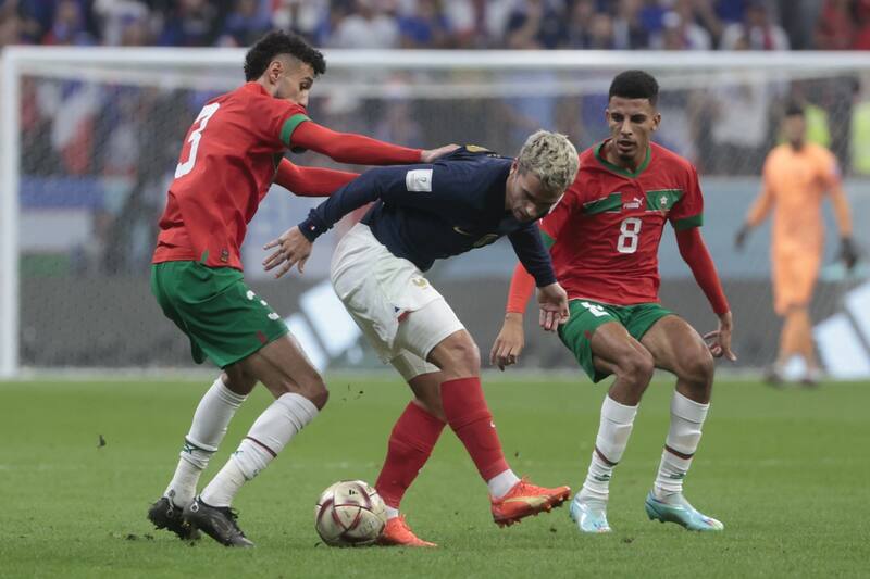 Griezmann, que durante muchos minutos se afanaba en taponar las vías de agua de su zaga, agarró el timón para enderezar el rumbo de la campeona, que seguía padeciendo cada vez que un marroquí se lanzaba al ataque. El sudor corría por la frente de Deschamps cuando Hamdallah casi se planta solo ante Lloris.