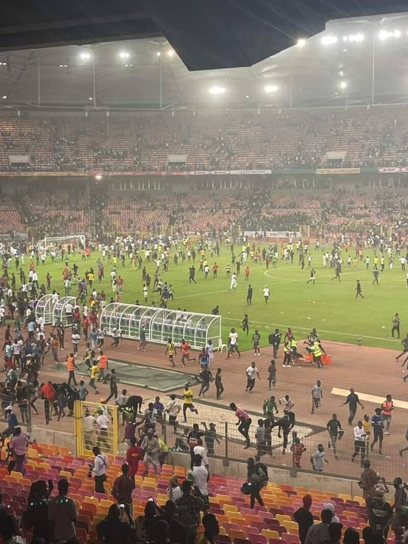 Tras finalizar el encuentro con el marcador 1-1 entre Nigeria y Ghana, los aficionados saltaron al campo para destrozar su propio terreno de juego, todo por no lograr la clasificación a la Copa del Mundo de Qatar 2022.
