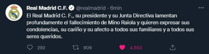 De acuerdo con algunos medios, la salud de Raiola se había complicado y habría fallecido esta tarde en Europa. Tras la viralización de la noticia, la cuenta oficial del Real Madrid dio el pésame sin corroborar la información. El tuit fue eliminado cuando la cuenta del representante señaló que no era la primera vez que lo mataban en la prensa y que esto le molestaba.