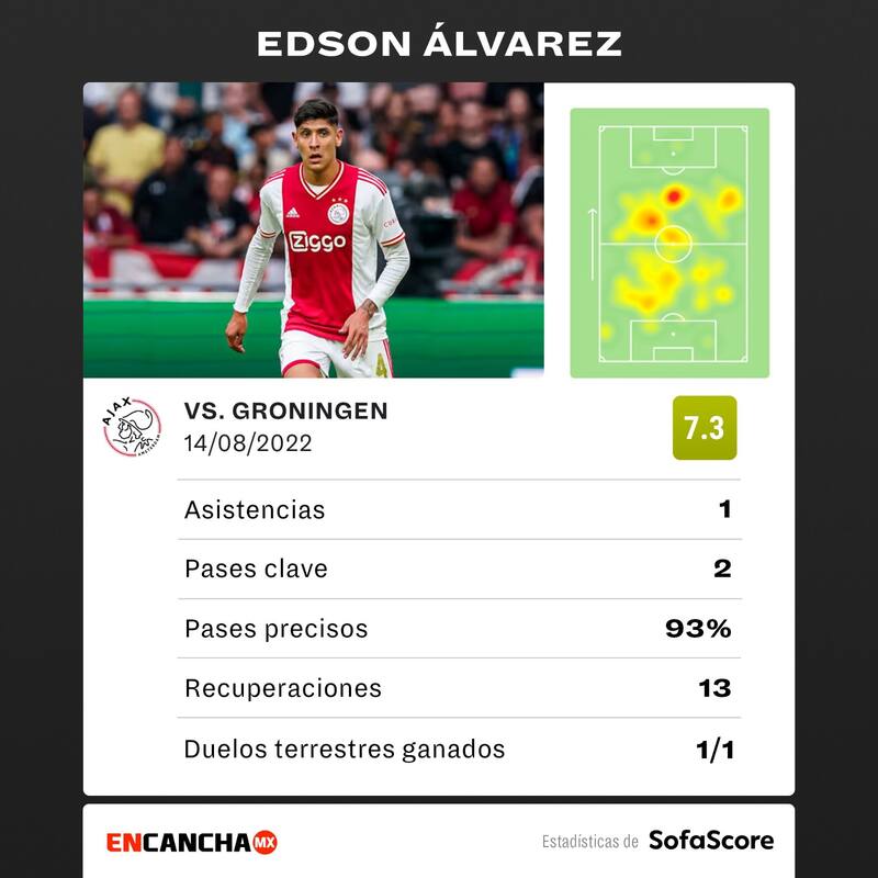 En una estadística compartida por SofaScore, el mediocampista de 24 años de edad tuvo una calificación en el enfrentamiento ante el Groningen de 7.3. Además de la asistencia, realizó dos pases claves, registró el 93 % de pases precisos, hizo 13 recuperaciones, y ganó su único duelo terrestre.