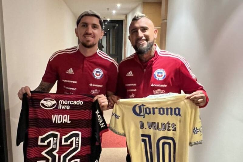 Arturo Vidal tuvo un buen gesto con Diego Valdés, compañero suyo de la Selección de Chile, durante la Fecha FIFA en la que se enfrentaron a Qatar. Ambos convivieron con La Roja en una de las últimas convocatorias del año y de paso, el ahora jugador del Flamengo de Brasil le regaló su camiseta al 10 del América.