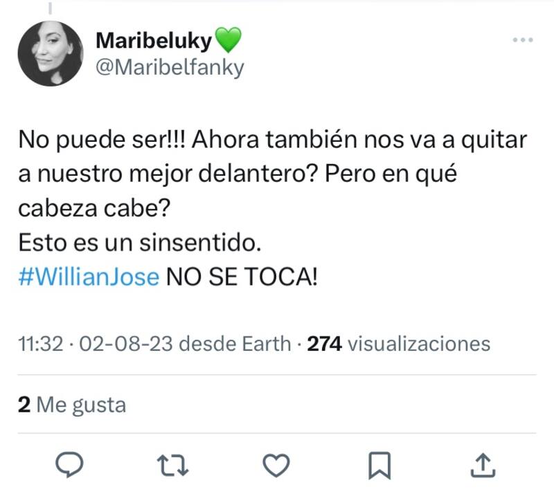 La partida de Willian José a México le significaría al Cruz Azul desembolsar alrededor de 7 millones de dólares. Una transacción que los hinchas béticos se han tomado con sarcasmo. En redes sociales, muchos replicaron el mensaje “Willian no se vende”, una súplica poco creíble si se consideran los números del jugador en la escuadra del Ingeniero.