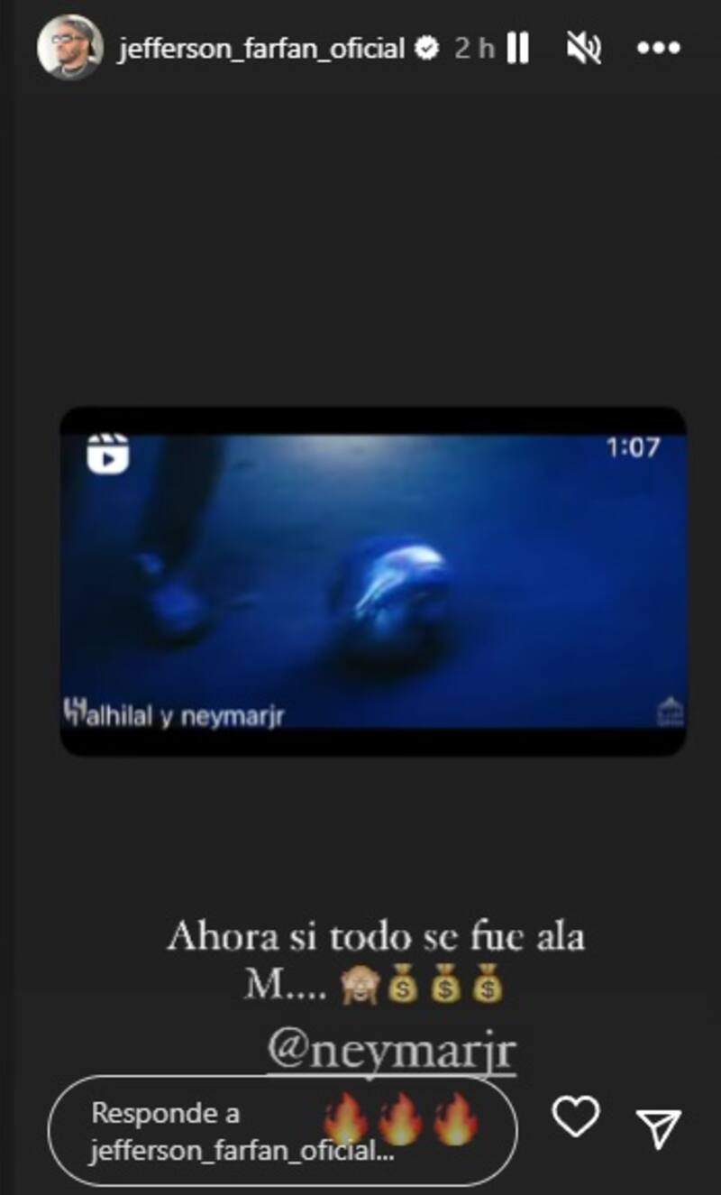 Uno de los que se pronunció al respecto por medio de redes sociales fue Jefferson Farfán, quien en su cuenta de Instagram compartió una historia del video de presentación con lo siguiente: “Ahora sí, todo se fue a la m...”, haciendo referencia con el dinero que percibirá el sudamericano, el cual rondaría los 300 millones de euros por los dos años.