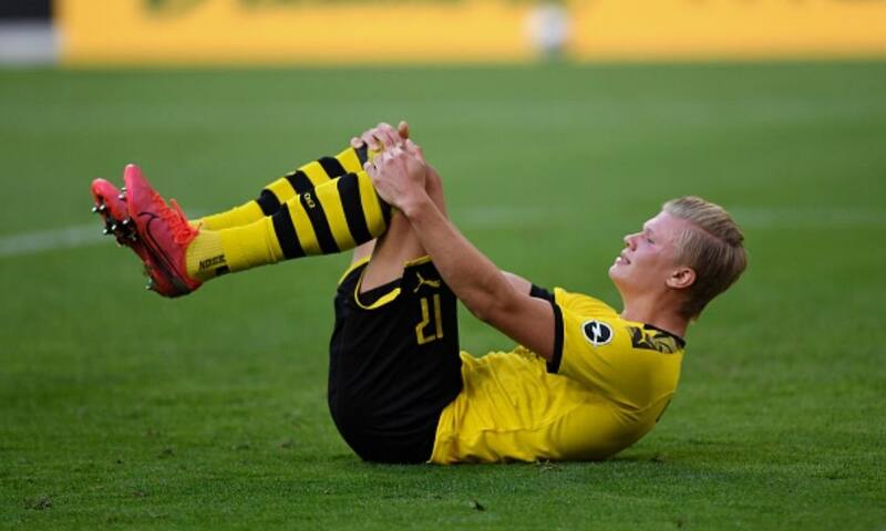 El noruego fue atendido en la banda y regresó al césped, pero minutos después, a la hora de juego, fue sustituido por Steffen Tigges. Haaland se marchó del terreno de juego y se quedó en el banquillo, donde fue asistido en el tobillo derecho por el cuerpo médico de su equipo.