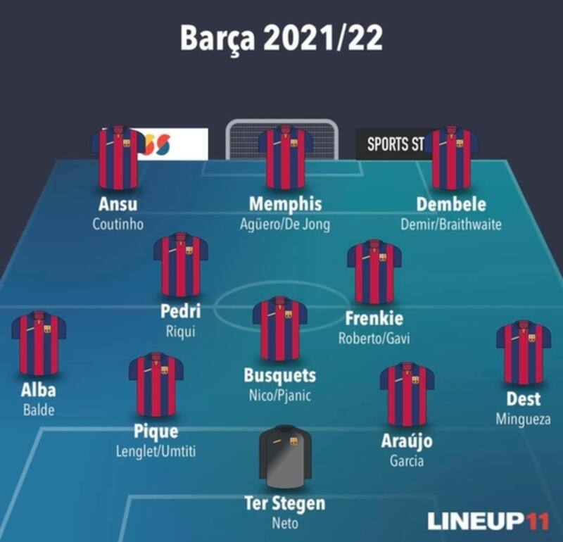 Con la marcha de Lionel Messi y Antoine Griezmann a Paris Saint-Germain y Atlético de Madrid respectivamente, este será el nuevo tridente ofensivo del conjunto azulgrana para la temporada 2021/22, se espera que Ansu Fati y Osumane Dembelé acompañen a Memphis en el ataque durante el tramo decisivo de la temporada.