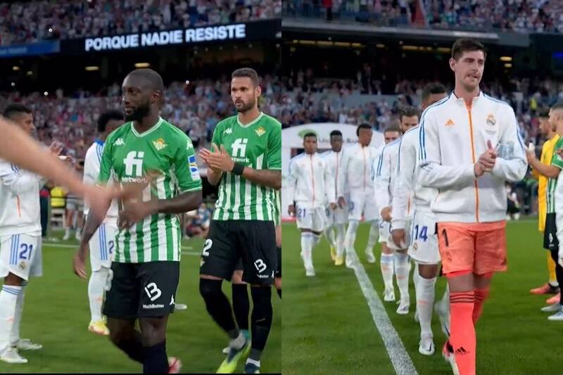 Antes del pitido inicial, los merengues hicieron un pasillo para aplaudirle a sus compañeros del conjunto verdiblanco y posteriormente, el rival hizo lo propio con los campeones de esta temporada 2021-22.