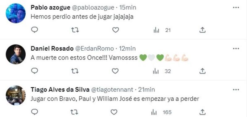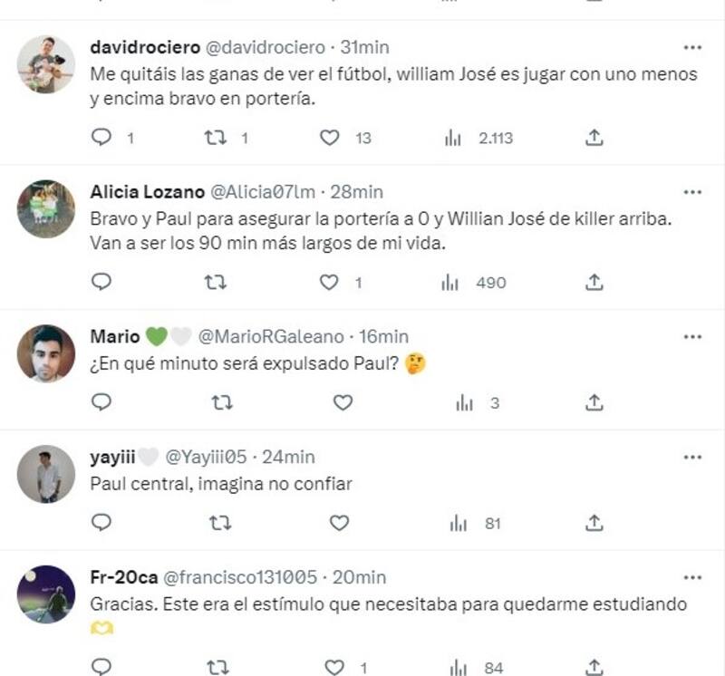 Y aunque la inclusión de Claudio Bravo se puede tomar como una fórmula del “Ingeniero” para retomar el rumbo -viene de tres fechas sin poder ganar- los fanáticos del Betis no se tomaron bien la noticia. Todo lo contrario, la confirmación de la alineación titular se llenó de críticas contra Pellegrini, tanto por el chileno como por el luso William José.