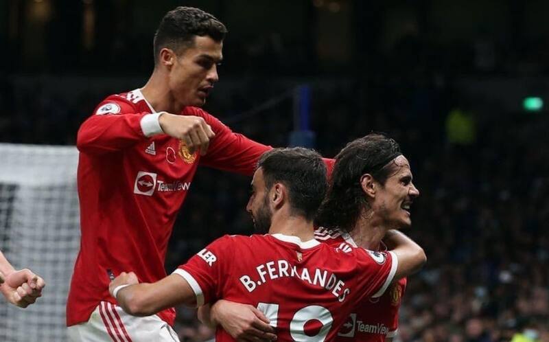 Cavani y Cristiano Ronaldo en la delantera del Manchester United