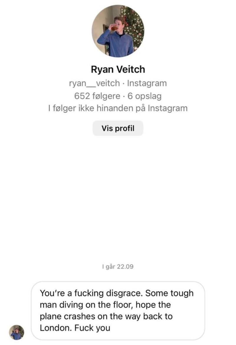 Sin embargo, la situación se desbordó y los aficionados del Liverpool comenzaron a mandarle mensajes al futbolista danés, amenazándolo a él y su familia. Por ello, Andersen publicó alguno de estos mensajes en su cuenta de Instagram para denunciarlos.