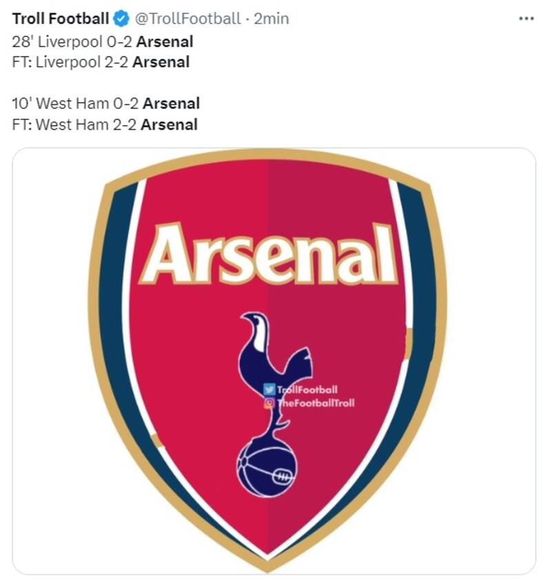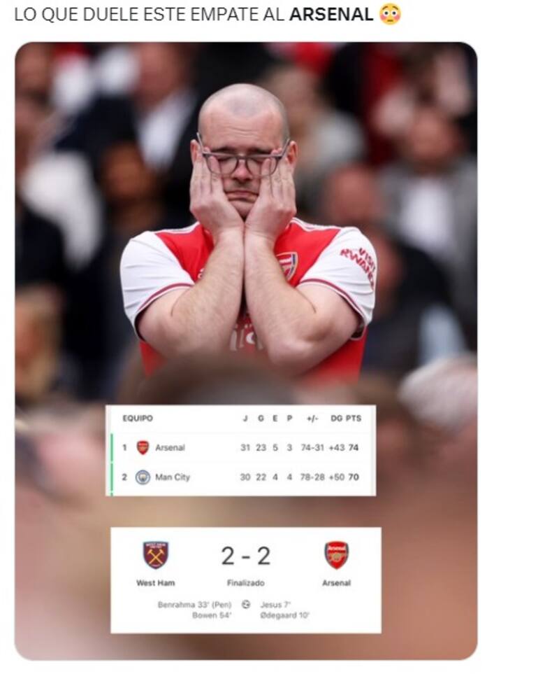 Los memes que dejó el empate de Arsenal ante West Ham United