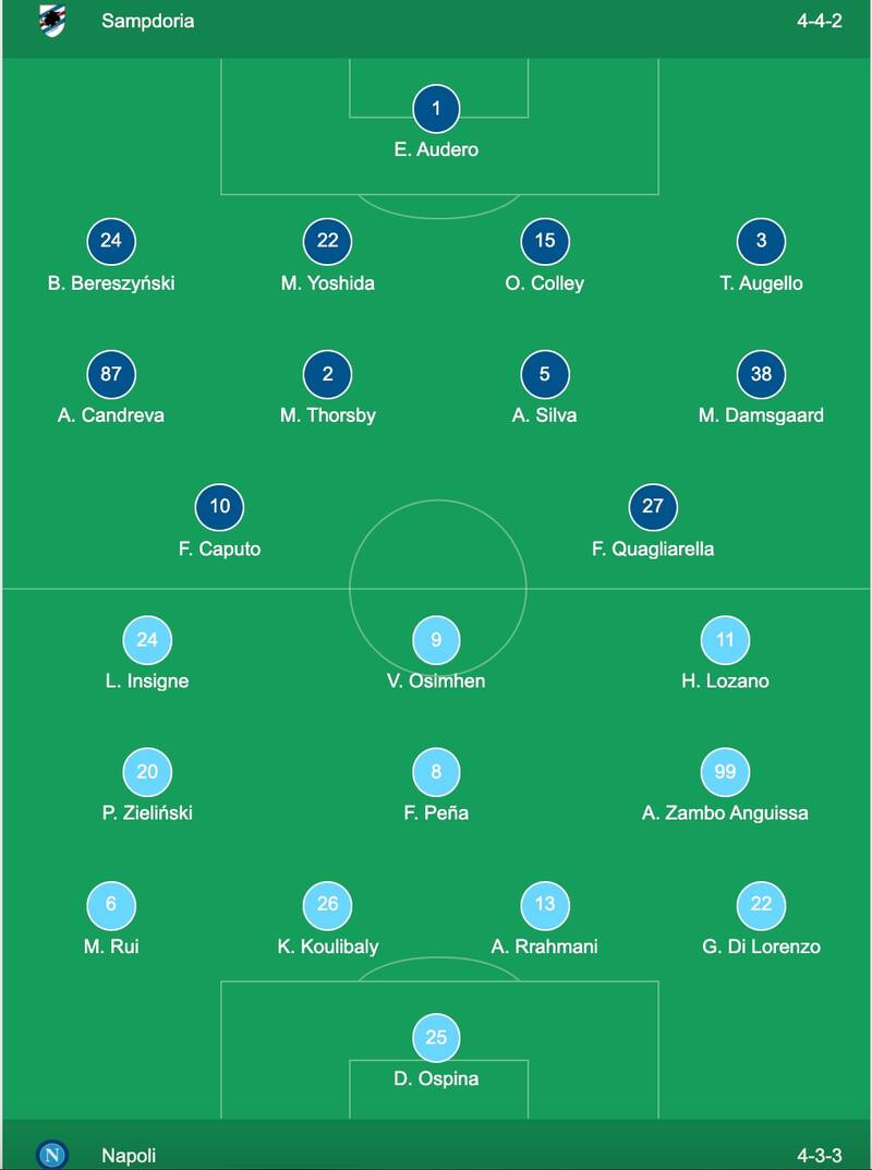 Desde el 11 de abril no se habían enfrentando, cuando el Napoli venció 2-0 de visitante en la jornada 30, en esa edición, Fabián Ruiz y Víctor Oshimen fueron los anotadores del encuentro.