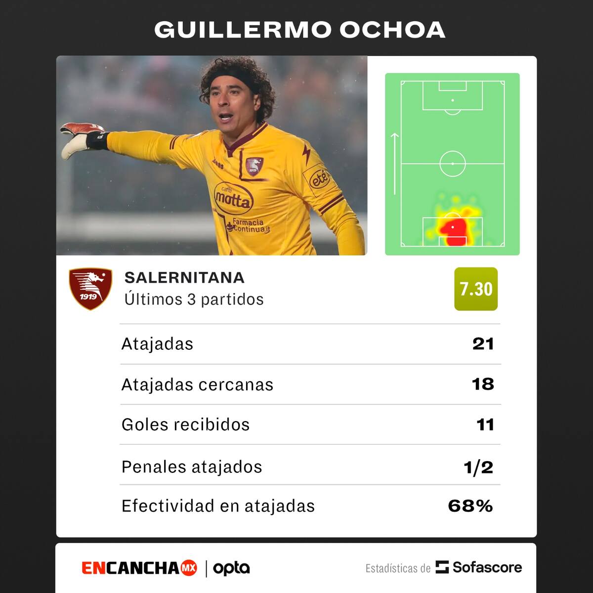 Los números de Guillermo Ochoa en el Salernitana