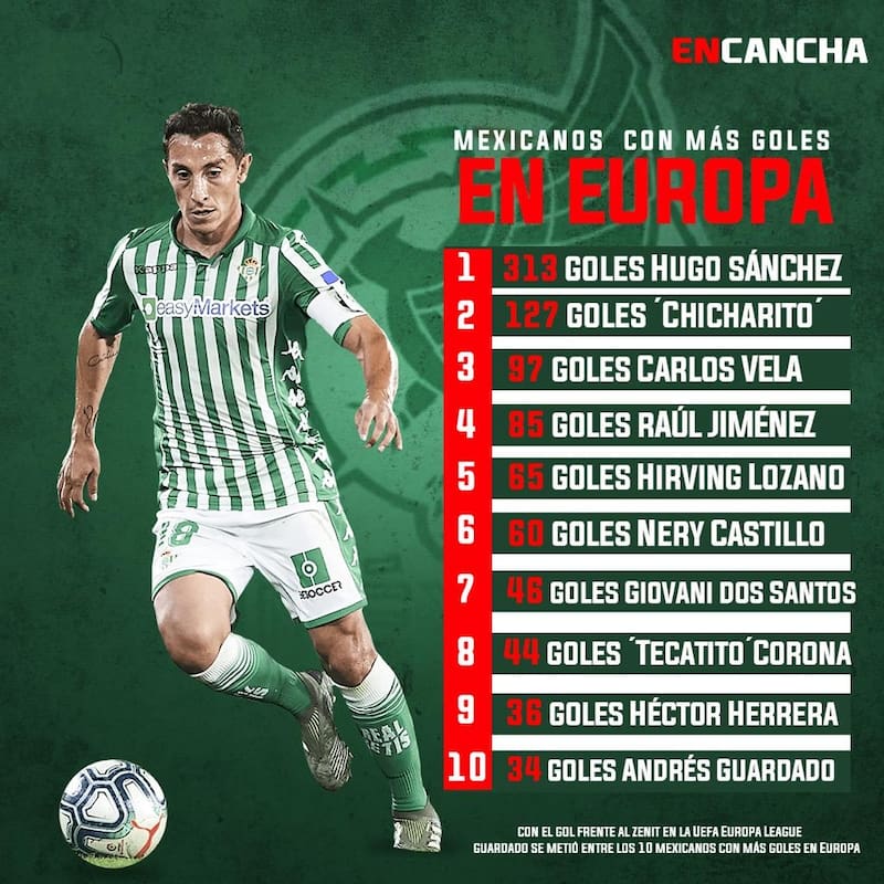 En la lista de los diez primeros, quienes aún juegan en Europa, además de Guardado, y pueden seguir incrementando sus números son Raúl Jiménez (85), Hirving Lozano (65), Tecatito Corona (44) y Héctor Herrera (36).