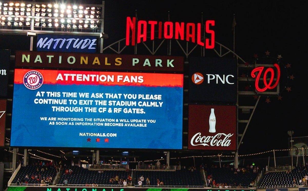 Detuvieron el partido de béisbol entre Washington Nationals y San Diego Padres por un tiroteo a las afueras del estadio Nationals Park, la gente evacuó entre la confusión del momento pero las autoridades locales instaron a que se resguardaran en el recinto y señalizaron que esto habría sucedido alrededor del lugar y no dentro. De acuerdo con medios locales hubo dos heridos.