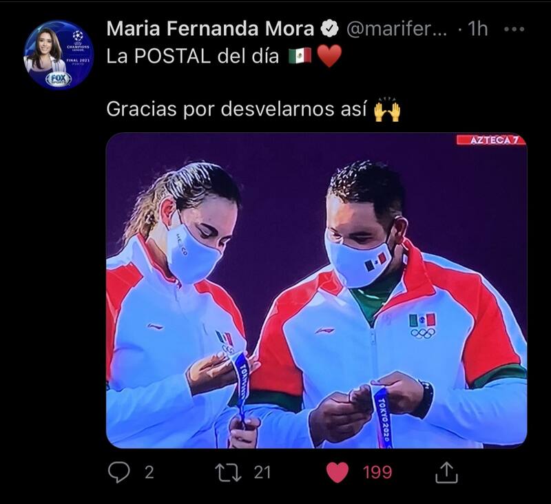 Este hecho sacudió a los mexicanos que se encuentran en casa, pues por la pandemia que azota el mundo, la afición no pudo estar presente en el momento que Alejandra y Luis se fundieron en un abrazo y se colocaron la medalla. Con grandes y excelentes noticias muchos de los mexicanos despertarán este sábado.