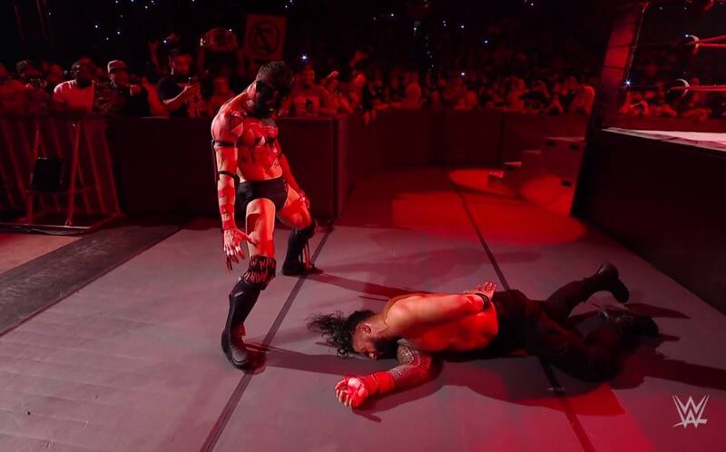 El demonio estaba teniendo un gran combate, el mejor de la noche, incluso los fanáticos se estaban emocionando, su música y los latidos sonarán después de que Reigns lo lanzará a la barricada reviviéndolo haciendo un poco más creíble que pudiera ganar el campeonato universal, termino un momentos llenos de acción, destrozaría a The Bloodline, y con todo el impulso Fin llevaría a su oponente para finalizar el combate y darle el golpe de gracia, entonces de pura casualidad la cuerda superior donde se encontraba Finn simplemente se rompería provocando su caída, lastimando al luchador que golpearía su rodilla contra la lona.