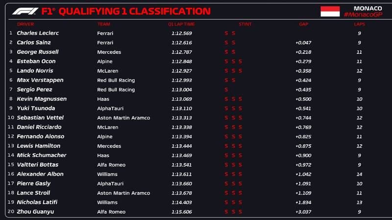 Estos son los resultados de la Qualy 1 del Gran Premio de Mónaco: