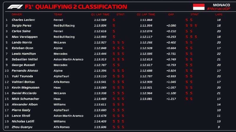 Así quedó la Q2 del Gran Premio de Mónaco: