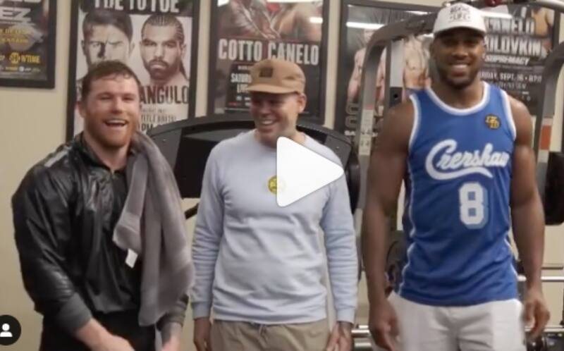 Pocas veces se puede ver a tanto talento reunido en un sólo lugar y está fue la ocasión, Saúl "Canelo" Álvarez recibió visitas de lujo mientras continua su preparación de cara a su compromiso del próximo 6 de noviembre ante el estadounidense, Caleb Plant, pues se dieron cita en su gimnasio de San Diego California, el ex monarca de los pesos completos, Anthony Joshua y el cantante Residente y estuvieron conviviendo con el considerado mejor libra por libra del momento.