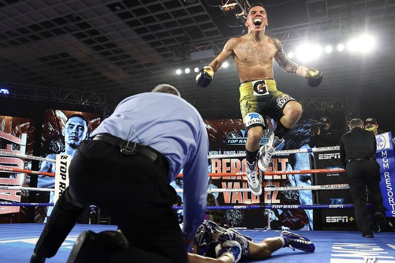 Oscar Valdez fue dominante por los primeros 10 episodios que duró el combate, lastimando la nariz del 'Alacrán' Berchelt durante los primero minutos y enviándolo a la lona por tres ocasiones para proclamarse campeón superligero del Consejo Mundial de Boxeo.