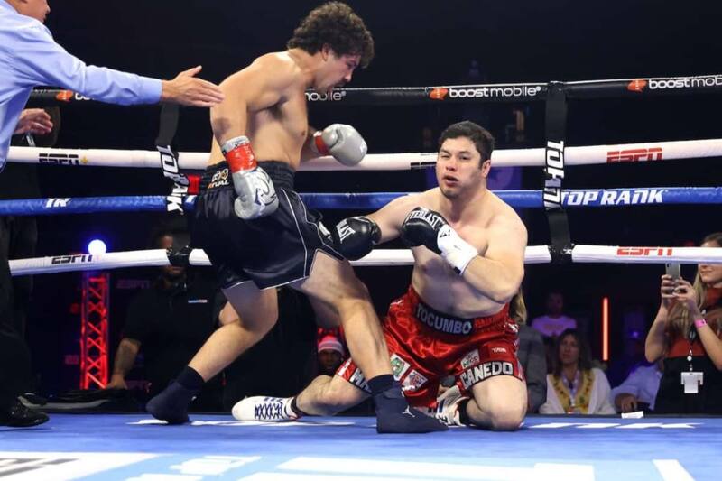 La pela de peso pesado la cual fue programada a seis asaltos culminó en un abrir y cerrar de ojos. El medallista de plata olímpico acabó con Marco Antonio Canedo con una ráfaga de golpes, la cual lo mandó a besar la lona a los dos minutos y 16 segundos del primer capítulo.