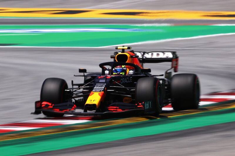 - El británico sólo necesitó cinco vueltas para estar al acecho de los Red Bull. De momento se mantiene a tres segundos del piloto mexicano y cinco de Max Verstappen.