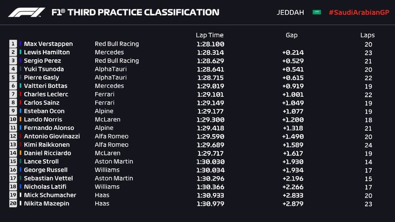 Los primeros cinco puestos de esta ronda los completaron Yuki Tsunoda y Pierre Gasly de Alpha Tauri, quienes tomaron la cuarta y quinta posición respectivamente.