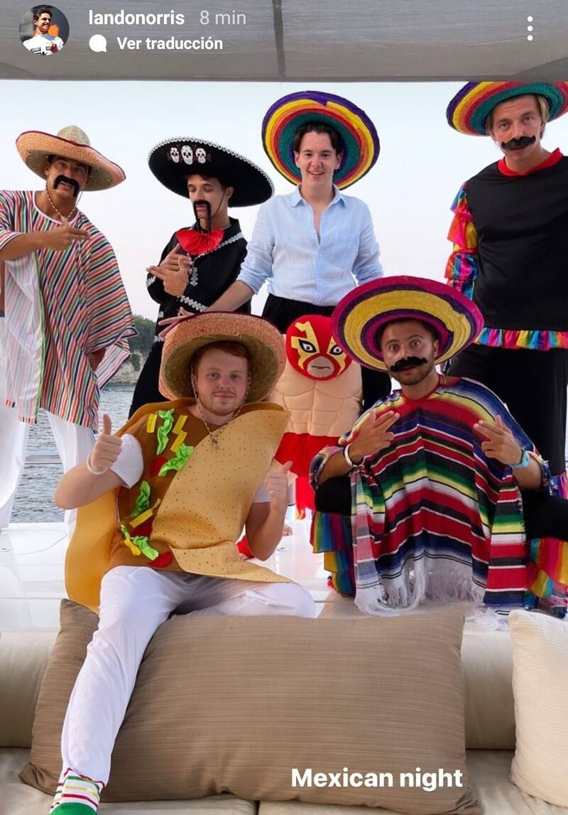 El corredor de origen inglés, aprovechó su tiempo libre para vacacionar en la playa junto con algunos de sus amigos y dicho tiempo libre fue acompañado de una fiesta con temática de la cultura de México, donde el elemento de McLaren lució un traje de charro en color negro acompañado de un bigote bastante llamativo.