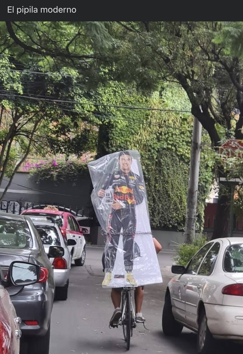 Previo al GP de México que se celebrará en noviembre próximo y aprovechando el auge de la 'Checomanía', la marca Mobil de lubricantes para motor comenzó a repartir publicidad de cartón con la imagen del piloto mexicano y rápidamente se convirtió en tendencia, porque los aficionados de la Fórmula 1 comenzaron a buscar las camionetas que estaban repartiendo las efigies del tapatío.