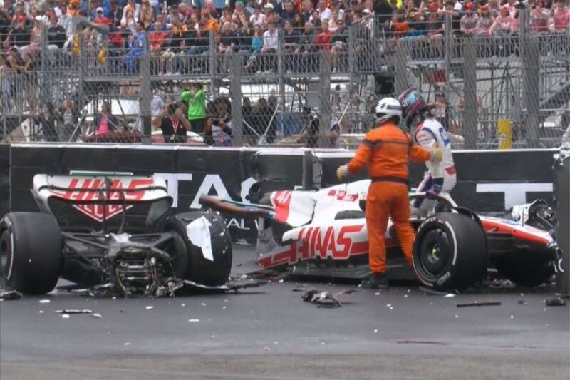 Antes de la vuelta 30 del GP de Mónaco, el hijo de Michael, Mick Schumacher, sufrió un accidente al perder el control de su monoplaza y se estampó contra una de las barreras. El doble impacto fue tal que partió en dos al auto, lo que lo dejó fuera de la competencia y al igual que Kevin Magnussen, Haas se quedó sin pilotos en esta carrera.