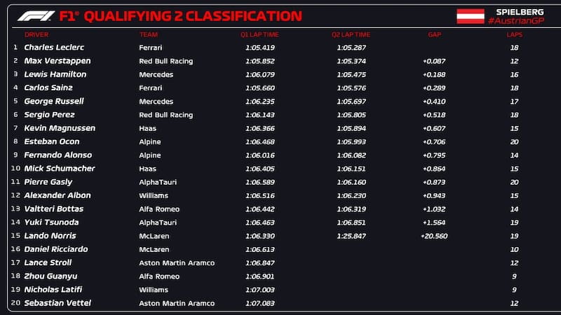 Resultados de la Q2 del GP de Austria: