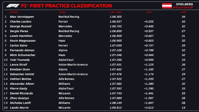 Estos fueron los resultados de la P1 en el GP de Austria: