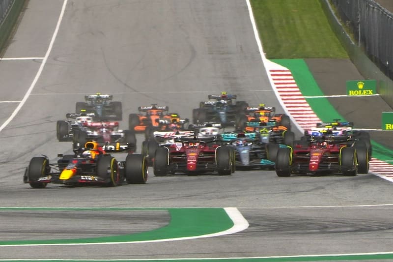 El Sprint del Gran Premio de Austria arrancó con mucha emoción, donde Max Verstappen se quedó con el primer lugar, seguido de Charles Leclerc y Carlos Sainz de Ferrari, mientras que Sergio Pérez se quedó en el quinto lugar remontando ocho puestos tras su castigo.