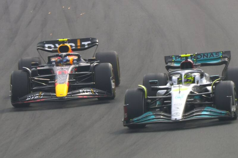 Checo Pérez resistió algo más cuando le tocó hacer lo propio con el heptacampeón, que le pasó en el segundo intento, aunque después se encontró con Sebastian Vettel (Aston Martin), que se incorporaba desde boxes, algo que le hizo perder unos segundos valiosos.