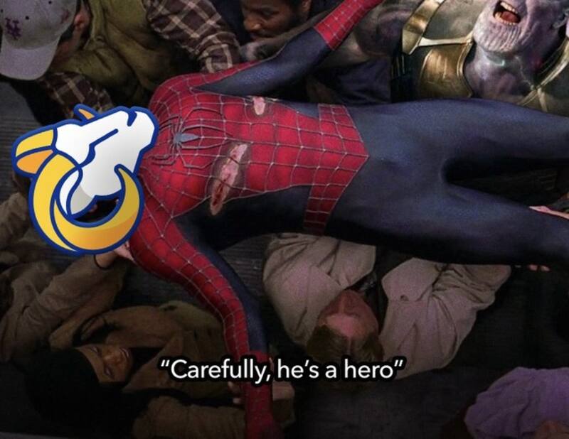 Aprovechando la fiebre por Spider-Man se revivió esta escena de la segunda película de la saga original en la que celebran la resistencia de los Rams: "Con cuidado. Es un héroe"