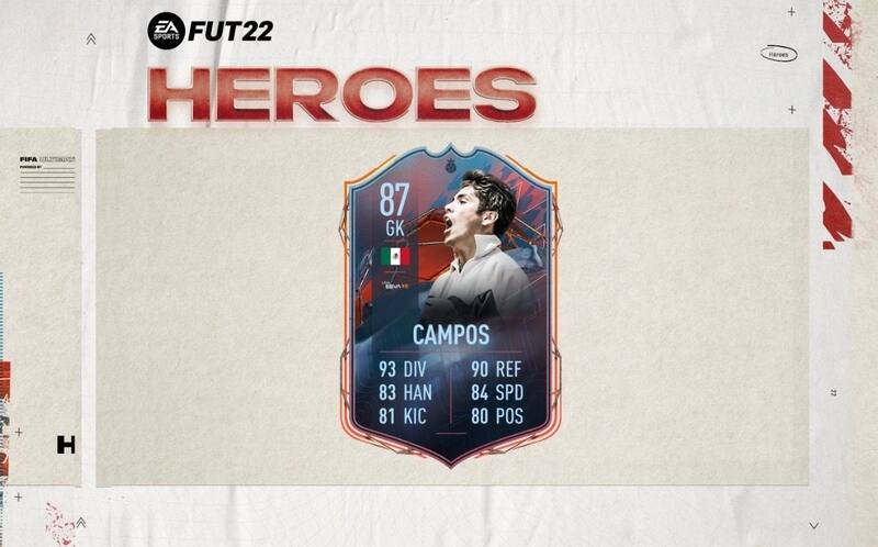EA Sports sacó a la luz la información completa acerca de la nueva carta que tendrá el mítico arquero, Jorge Campos, en el Ultimate Team de FIFA 22, además tendrá links con algunos jugadores de la Liga MX y con futbolistas de nacionalidad mexicana. En el apartado de "Héroes" aparecerá esta tarjeta sobre la nueva serie de Ultimate Team en FIFA que tendrá los momentos específicos de algunos jugadores del pasado, los cuales generan un link verde con jugadores de su nacionalidad y Liga.
