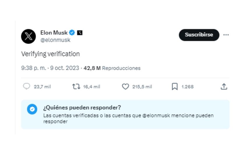 Fue el propio Elon Musk el encargado de probar la herramienta publicando un enigmático mensaje con el texto “Verificando la verificación”.