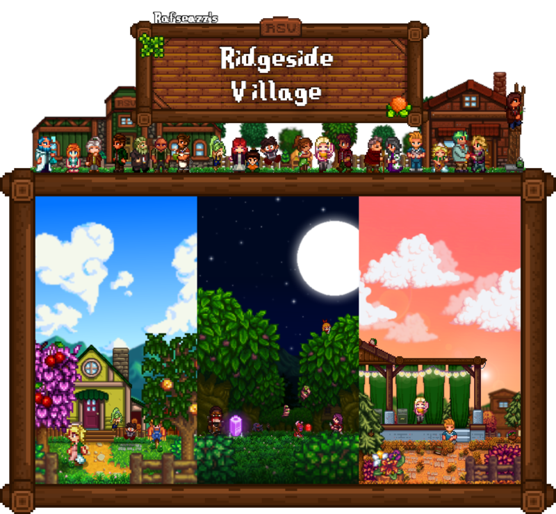 Ridgeside Village, el igual que SVE, es un mod que añade un montón de cosas nuevas a tu partida, entre las que destacan más de 50 NPCs (22 de estos siendo nuevos candidatos a matrimonio) y sobre 400 eventos entre los que se incluyen incluso festivales.