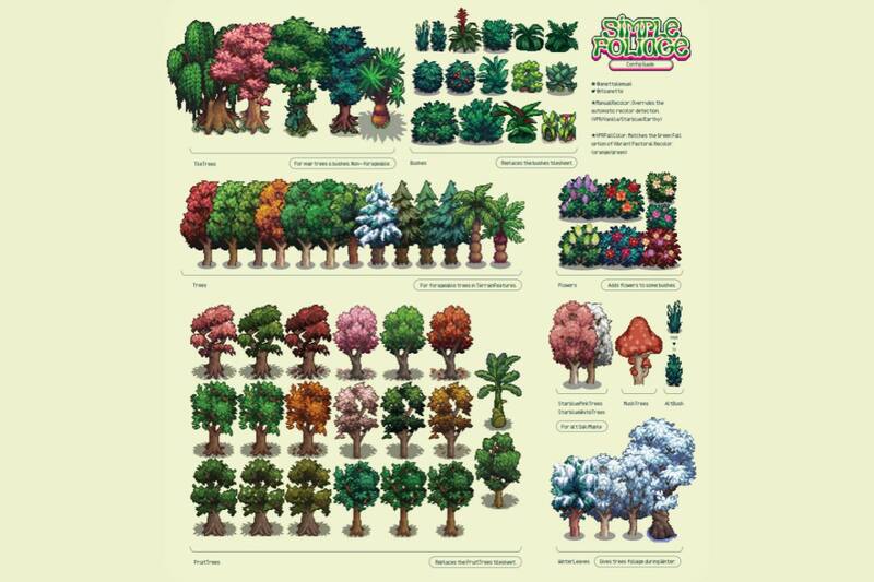 Este mod modifica los árboles y arbustos del juego, dándoles una apariencia simplemente preciosa.