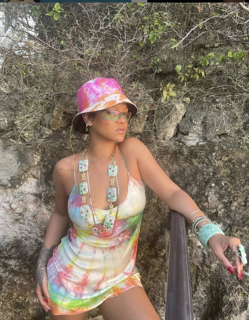 A través de Twitter e Instagram comenzó a circular una publicación de  Rihanna, la cantante aparece  en topless con ropa interior de satén lavanda de su marca "Savage X Fenty". El   look fue acompaño con joyas como brazaletes que hacen  juego con otras joyas púrpuras, aretes grandes y el accesorio que generó polémica fue un collar que tiene a la deidad  hindú  y que la actriz utilizó en su cuello.