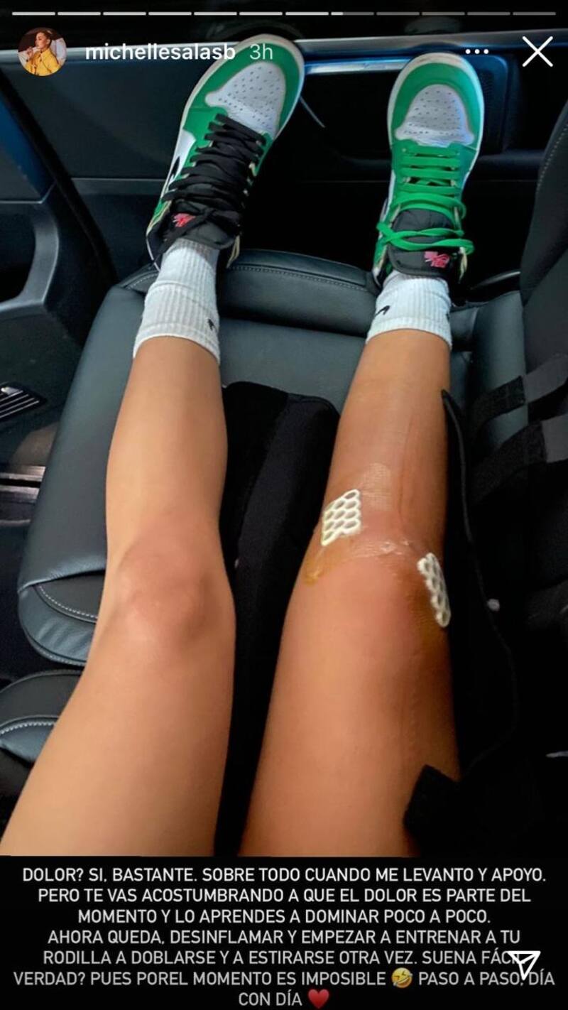 También explicó en dichas historias de Instagram, el proceso que llevará para recuperase: "Ahora qued, desinflamar y empezar a entrenar a tu rodilla a doblarse y a estirarse otra vez. Suena fácil verdad? pues por el momento es imposible" concluyendo el post con un mensaje positivo, "paso a paso , día a día".