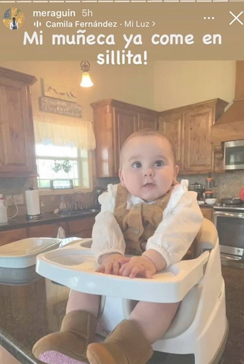 "¡Mi muñeca ya come en sillita!", escribió la tapatía sobre una historia donde se ve a la bebé muy sentadita y lista para disfrutar de sus alimentos.