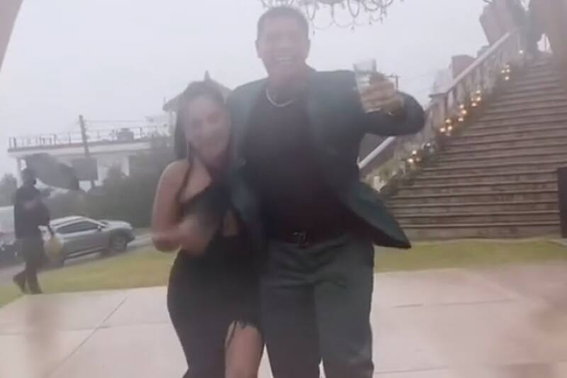 Aunque las autoridades municipales recomendaron a la población mantenerse resguardada por el paso del huracán "Pamela" en Mazatlán, Sinaloa, Eduin Caz y su esposa Daysi Anahy celebraron el bautizo de su hija, en una fiesta amenizada por Calibre 50 y Los Tucanes de Tijuana.