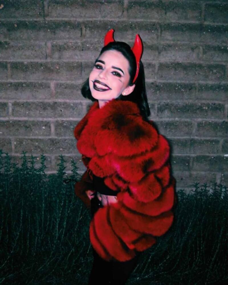 En 2018, la nieta de Flor Silvestre se unió a la celebración del Halloween por medio de un disfraz de diablita, el cual constó de un top y pantalón negros, así como un par de mangas con peluche rojo, unos cuernos y un oscuro makeup.